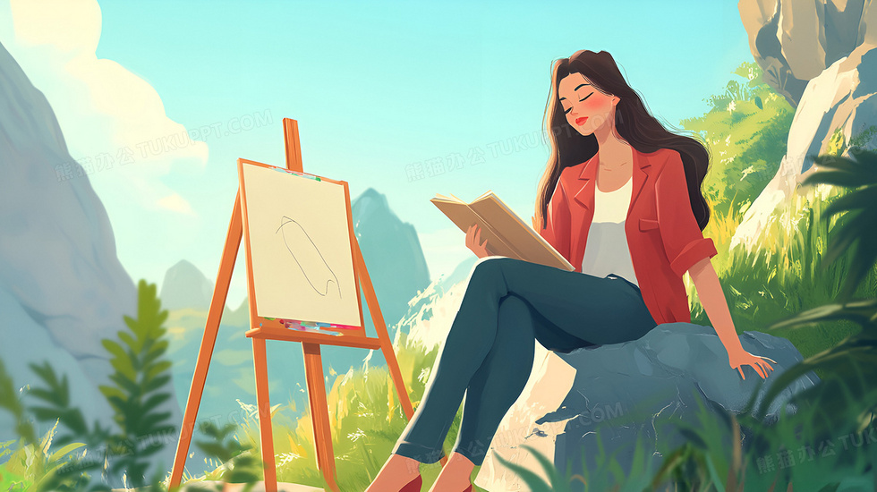 本作品内容为户外写生画画的女生插画, 格式为 jpg, 大小1 MB, 图片尺寸为2912 x 1632, 源文件无水印, 欢迎使用熊猫办公。 如认为平台内容涉嫌侵权,可通过邮件:tousu@tukuppt.com提出书面通知,我们将及时处理。