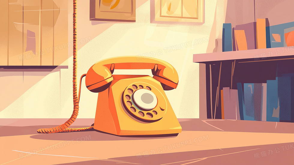 本作品内容为一个老式转盘拨号电话机插画, 格式为 jpg, 大小3 MB, 图片尺寸为2912 x 1632, 源文件无水印, 欢迎使用熊猫办公。 如认为平台内容涉嫌侵权,可通过邮件:tousu@tukuppt.com提出书面通知,我们将及时处理。