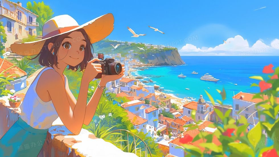 本作品内容为旅游拍照摄影的女孩插画, 格式为 jpg, 大小3 MB, 图片尺寸为2912 x 1632, 源文件无水印, 欢迎使用熊猫办公。 如认为平台内容涉嫌侵权,可通过邮件:tousu@tukuppt.com提出书面通知,我们将及时处理。