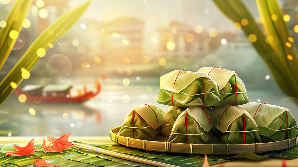 本作品内容为竹筏上的端午粽子插画, 格式为 jpg, 大小3 MB, 图片尺寸为2912 x 1632, 源文件无水印, 欢迎使用熊猫办公。 如认为平台内容涉嫌侵权,可通过邮件:tousu@tukuppt.com提出书面通知,我们将及时处理。