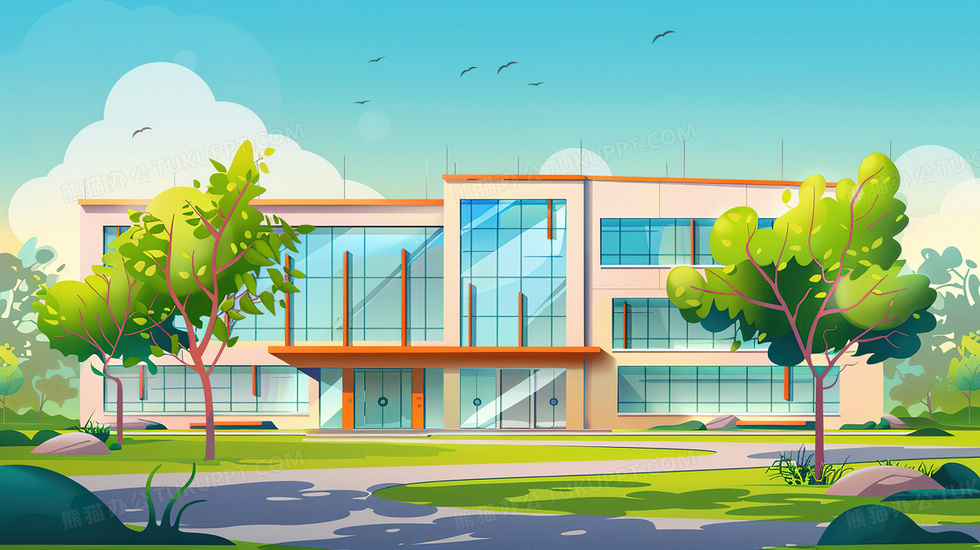 本作品内容为卡通楼房教学楼建筑插画, 格式为 jpg, 大小3 MB, 图片尺寸为2912 x 1632, 源文件无水印, 欢迎使用熊猫办公。 如认为平台内容涉嫌侵权,可通过邮件:tousu@tukuppt.com提出书面通知,我们将及时处理。
