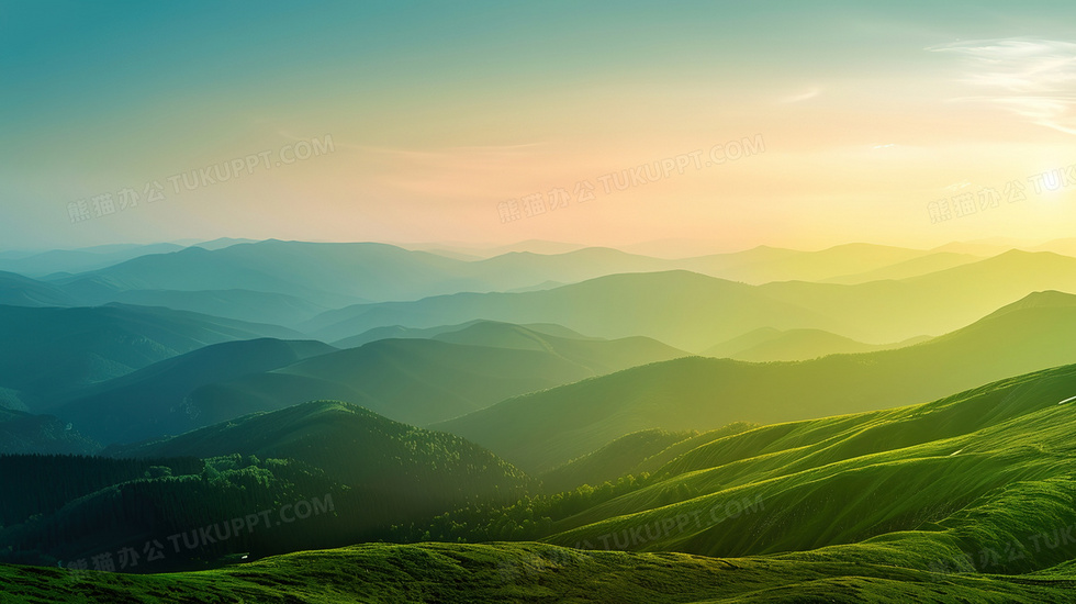 本作品内容为绿色起伏远山山脉风景背景, 格式为 jpg, 大小3 MB, 图片尺寸为2912 x 1632, 作品中背景图片无需修改, 源文件无水印,可以直接使用, 欢迎使用熊猫办公。 如认为平台内容涉嫌侵权,可通过邮件:tousu@tukuppt.com提出书面通知,我们将及时处理。