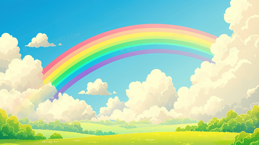本作品内容为唯美天空彩虹草地插画, 格式为 jpg, 大小2 MB, 图片尺寸为2912 x 1632, 源文件无水印, 欢迎使用熊猫办公。 如认为平台内容涉嫌侵权,可通过邮件:tousu@tukuppt.com提出书面通知,我们将及时处理。