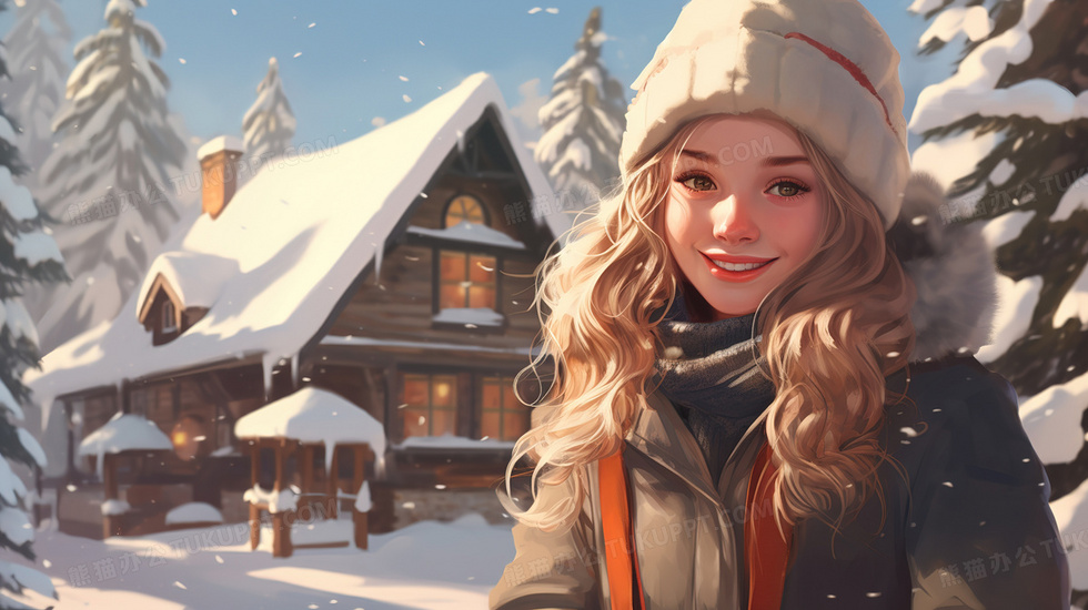 本作品内容为被雪覆盖的小木屋前的漂亮女生插画, 格式为 jpg, 大小2 MB, 图片尺寸为2912 x 1632, 源文件无水印, 欢迎使用熊猫办公。 如认为平台内容涉嫌侵权,可通过邮件:tousu@tukuppt.com提出书面通知,我们将及时处理。