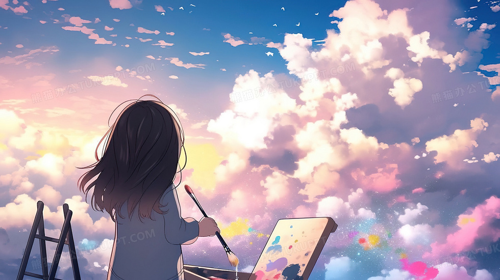 本作品内容为观看蓝天云团绘画的小孩插画, 格式为 jpg, 大小3 MB, 图片尺寸为2912 x 1632, 源文件无水印, 欢迎使用熊猫办公。 如认为平台内容涉嫌侵权,可通过邮件:tousu@tukuppt.com提出书面通知,我们将及时处理。