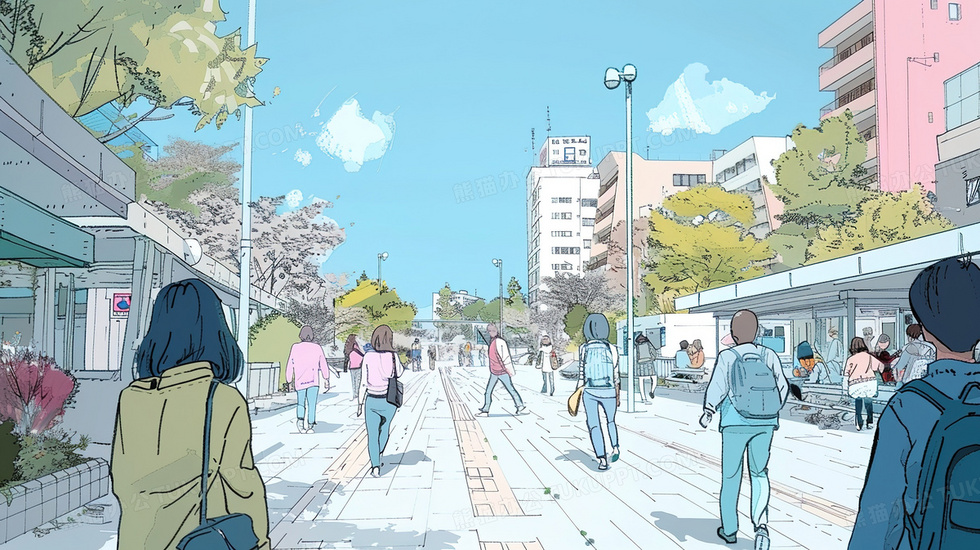 本作品内容为城市街道人物风景插画, 格式为 jpg, 大小3 MB, 图片尺寸为2912 x 1632, 源文件无水印, 欢迎使用熊猫办公。 如认为平台内容涉嫌侵权,可通过邮件:tousu@tukuppt.com提出书面通知,我们将及时处理。