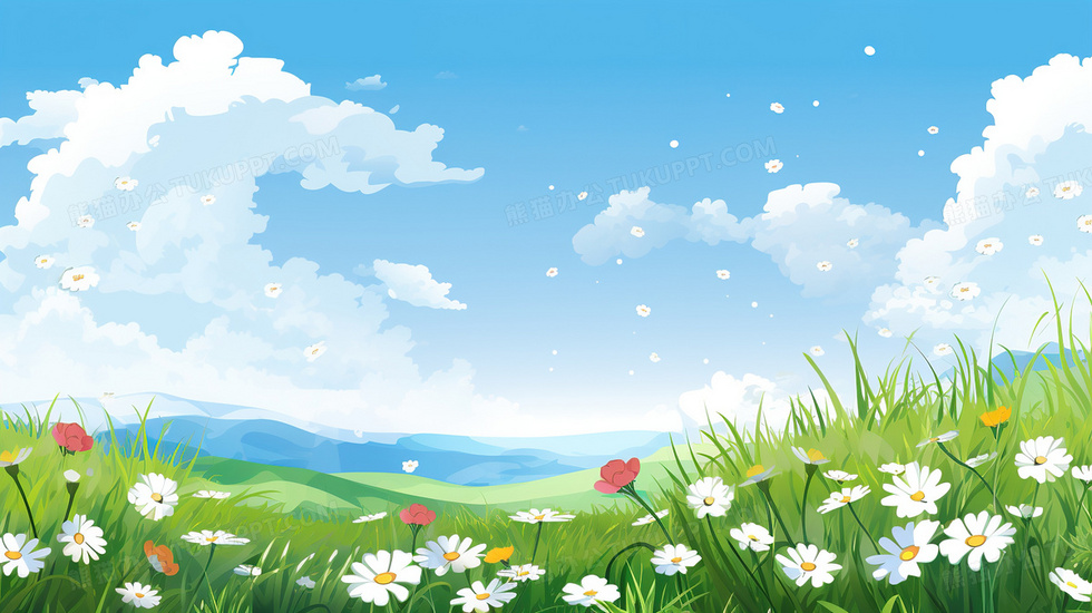 本作品内容为春天绿色草地风景卡通大自然背景, 格式为 jpg, 大小3 MB, 图片尺寸为2912 x 1632, 作品中背景图片无需修改, 源文件无水印,可以直接使用, 欢迎使用熊猫办公。 如认为平台内容涉嫌侵权,可通过邮件:tousu@tukuppt.com提出书面通知,我们将及时处理。