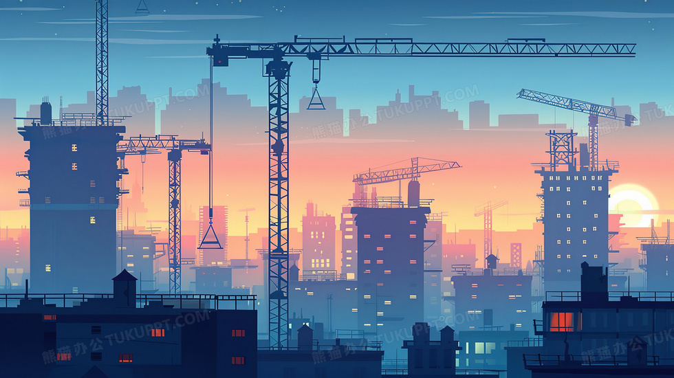 本作品内容为工地建筑高楼施工插画, 格式为 jpg, 大小3 MB, 图片尺寸为2912 x 1632, 源文件无水印, 欢迎使用熊猫办公。 如认为平台内容涉嫌侵权,可通过邮件:tousu@tukuppt.com提出书面通知,我们将及时处理。