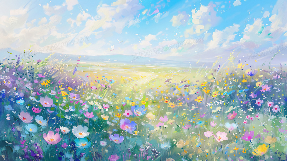本作品内容为蓝天白云唯美田野花海风景插画, 格式为 jpg, 大小4 MB, 图片尺寸为2912 x 1632, 源文件无水印, 欢迎使用熊猫办公。 如认为平台内容涉嫌侵权,可通过邮件:tousu@tukuppt.com提出书面通知,我们将及时处理。