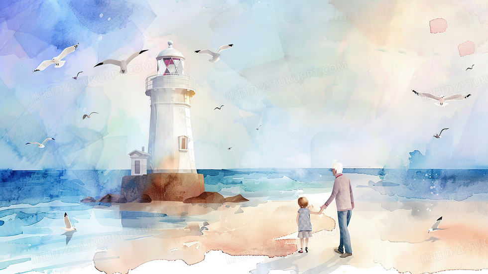 本作品内容为大海灯塔边的父女插画, 格式为 jpg, 大小3 MB, 图片尺寸为2912 x 1632, 源文件无水印, 欢迎使用熊猫办公。 如认为平台内容涉嫌侵权,可通过邮件:tousu@tukuppt.com提出书面通知,我们将及时处理。