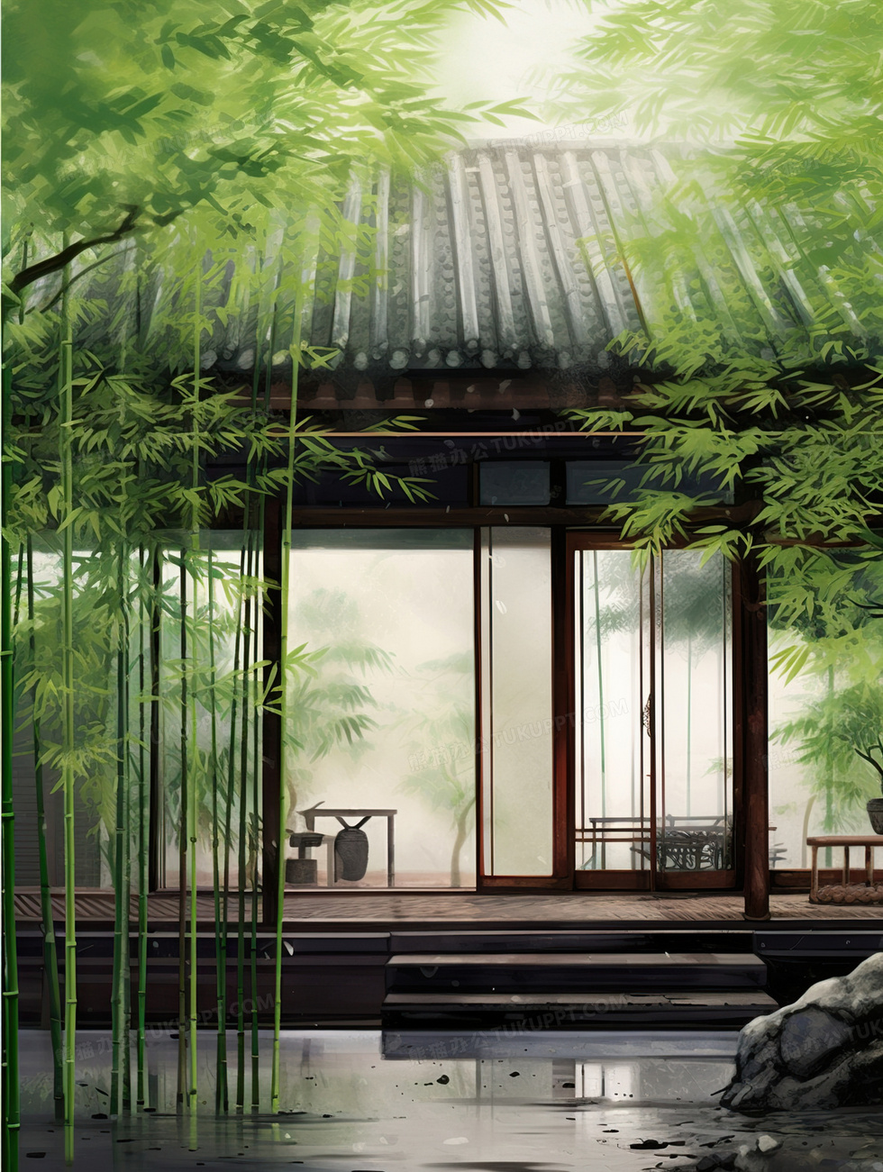 本作品内容为中国风绿色深幽竹林国风插画, 格式为 jpg, 大小3 MB, 图片尺寸为1856 x 2464, 源文件无水印, 欢迎使用熊猫办公。 如认为平台内容涉嫌侵权,可通过邮件:tousu@tukuppt.com提出书面通知,我们将及时处理。