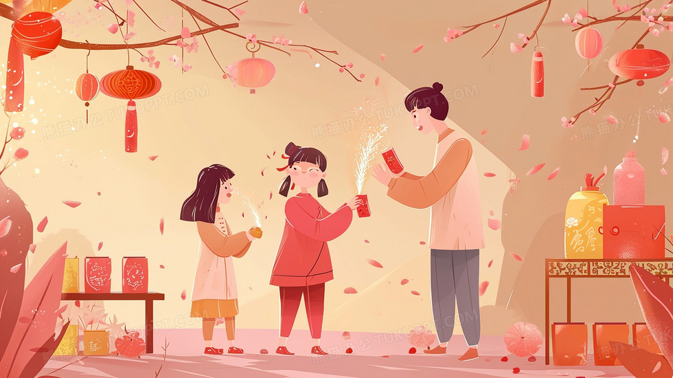 本作品内容为春节大人小孩一起放烟花的插画, 格式为 jpg, 大小2 MB, 图片尺寸为2912 x 1632, 源文件无水印, 欢迎使用熊猫办公。 如认为平台内容涉嫌侵权,可通过邮件:tousu@tukuppt.com提出书面通知,我们将及时处理。