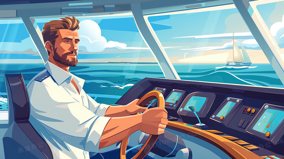 本作品内容为帅气的航海日船长插画, 格式为 jpg, 大小3 MB, 图片尺寸为2912 x 1632, 源文件无水印, 欢迎使用熊猫办公。 如认为平台内容涉嫌侵权,可通过邮件:tousu@tukuppt.com提出书面通知,我们将及时处理。