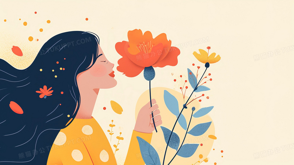 本作品内容为手拿鲜花的长发女孩简约卡通插画, 格式为 jpg, 大小2 MB, 图片尺寸为2912 x 1632, 源文件无水印, 欢迎使用熊猫办公。 如认为平台内容涉嫌侵权,可通过邮件:tousu@tukuppt.com提出书面通知,我们将及时处理。
