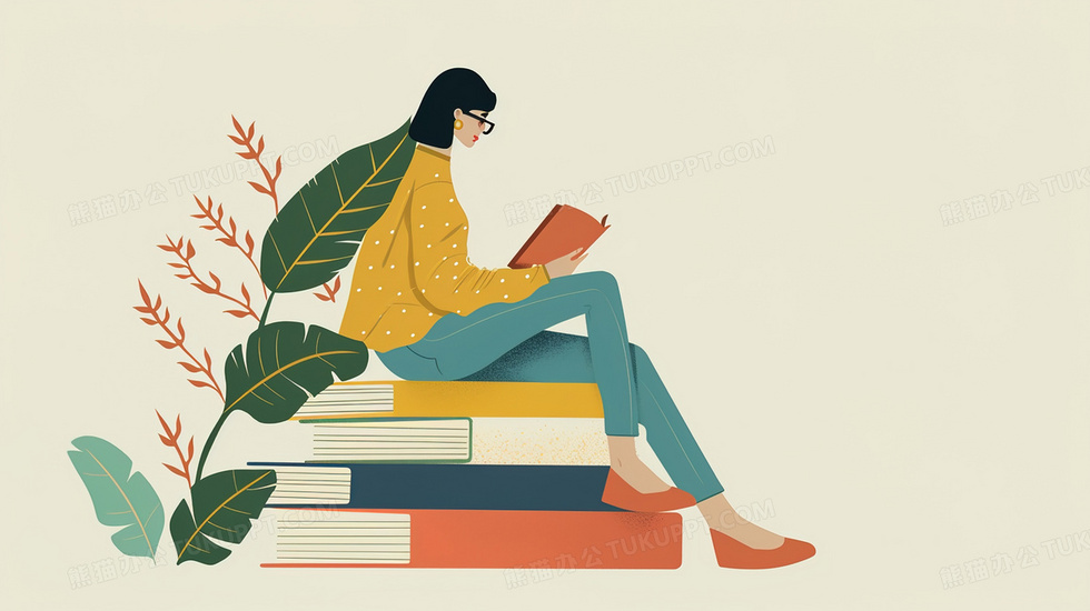 本作品内容为矢量扁平坐在书本上看书的女孩插画, 格式为 jpg, 大小2 MB, 图片尺寸为2912 x 1632, 源文件无水印, 欢迎使用熊猫办公。 如认为平台内容涉嫌侵权,可通过邮件:tousu@tukuppt.com提出书面通知,我们将及时处理。