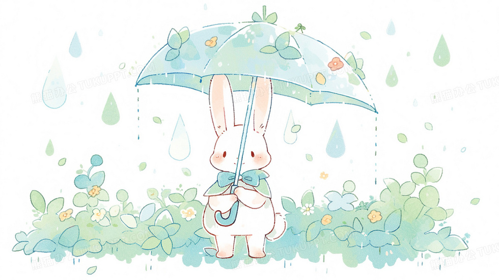 本作品内容为在春雨中撑伞的可爱小白兔绿色背景插画, 格式为 jpg, 大小2 MB, 图片尺寸为2912 x 1632, 源文件无水印, 欢迎使用熊猫办公。 如认为平台内容涉嫌侵权,可通过邮件:tousu@tukuppt.com提出书面通知,我们将及时处理。