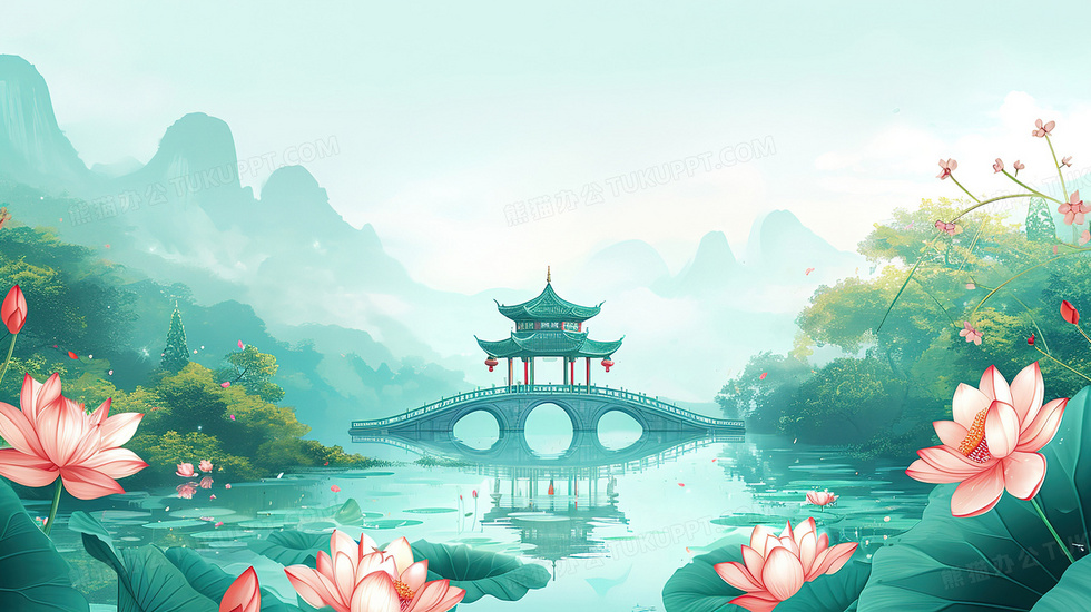 本作品内容为唯美中国风荷花湖心亭插画, 格式为 jpg, 大小3 MB, 图片尺寸为2912 x 1632, 源文件无水印, 欢迎使用熊猫办公。 如认为平台内容涉嫌侵权,可通过邮件:tousu@tukuppt.com提出书面通知,我们将及时处理。