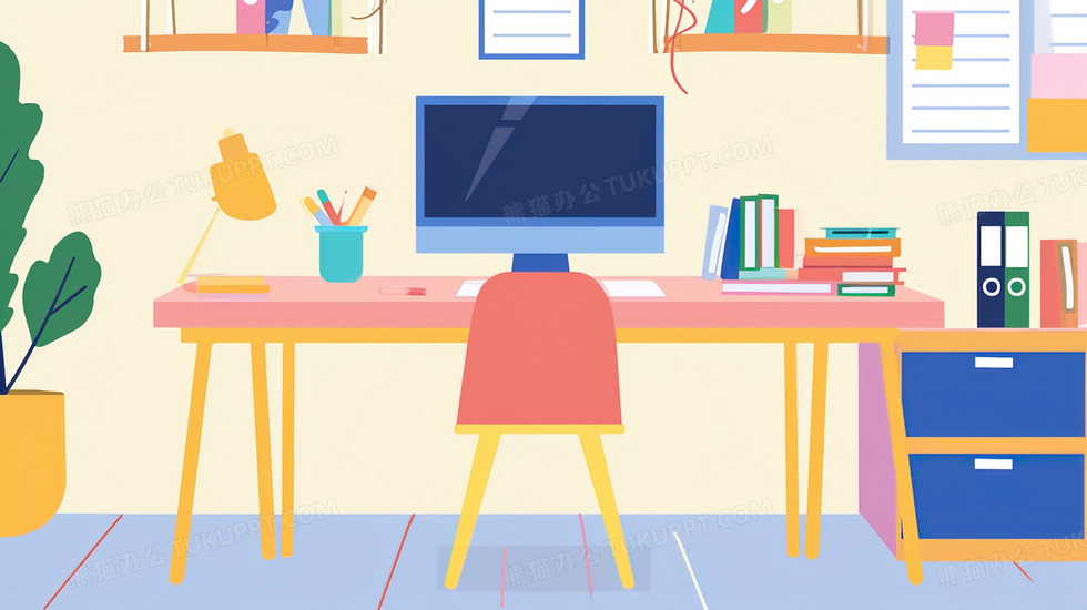 本作品内容为扁平化书桌学习用品插画, 格式为 jpg, 大小2 MB, 图片尺寸为2912 x 1632, 源文件无水印, 欢迎使用熊猫办公。 如认为平台内容涉嫌侵权,可通过邮件:tousu@tukuppt.com提出书面通知,我们将及时处理。