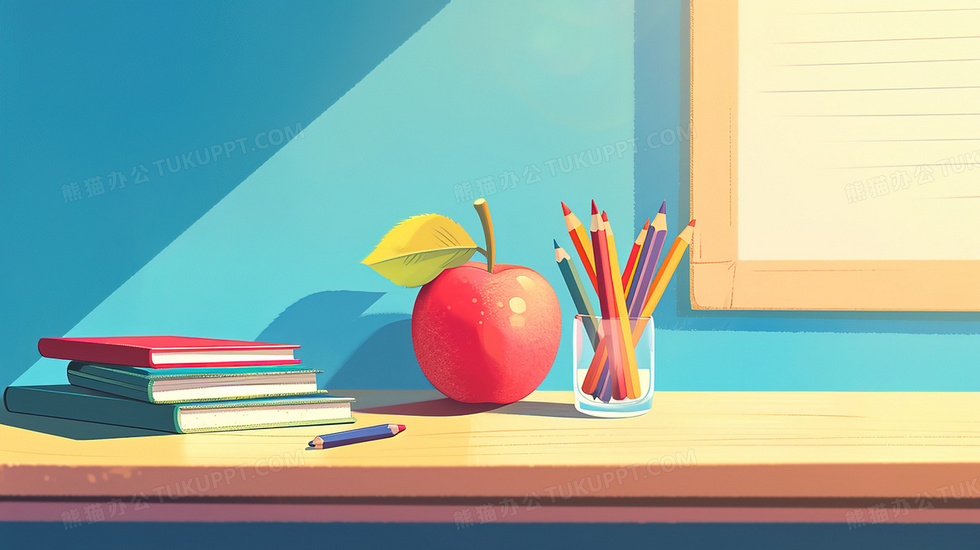 本作品内容为书桌水果学习用品插画, 格式为 jpg, 大小2 MB, 图片尺寸为2912 x 1632, 源文件无水印, 欢迎使用熊猫办公。 如认为平台内容涉嫌侵权,可通过邮件:tousu@tukuppt.com提出书面通知,我们将及时处理。