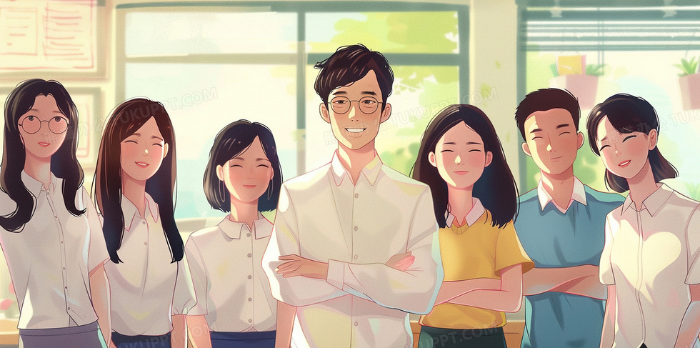 本作品内容为毕业的学生和男老师合影插画, 格式为 jpg, 大小4 MB, 图片尺寸为2912 x 1446, 源文件无水印, 欢迎使用熊猫办公。 如认为平台内容涉嫌侵权,可通过邮件:tousu@tukuppt.com提出书面通知,我们将及时处理。