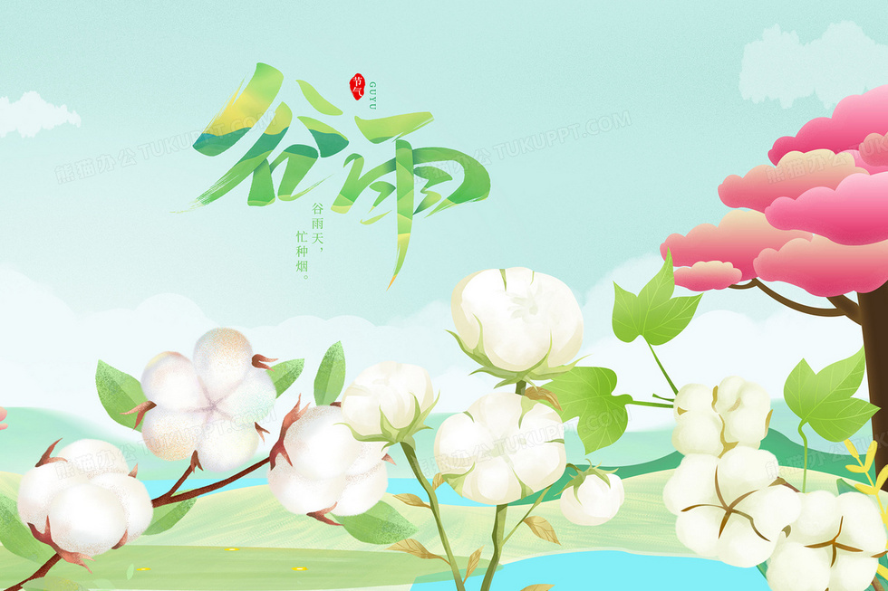 本作品内容为谷雨棉花节气风景插画, 格式为 psd, 大小55 MB, 请使用软件PhotoShop(CS6)打开, 源文件无水印, 欢迎使用熊猫办公。 如认为平台内容涉嫌侵权,可通过邮件:tousu@tukuppt.com提出书面通知,我们将及时处理。