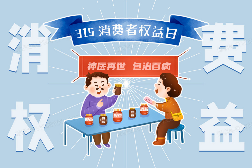 本作品内容为315消费者权益日系列漫画卖假药插画, 格式为 psd, 大小6 MB, 请使用软件PhotoShop(CC)打开, 源文件无水印, 欢迎使用熊猫办公。 如认为平台内容涉嫌侵权,可通过邮件:tousu@tukuppt.com提出书面通知,我们将及时处理。