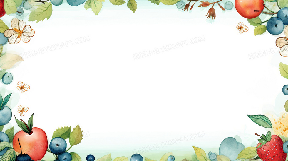 本作品内容为卡通可爱水果小清新边框背景, 格式为 jpg, 大小2 MB, 图片尺寸为2912 x 1632, 作品中背景图片无需修改, 源文件无水印,可以直接使用, 欢迎使用熊猫办公。 如认为平台内容涉嫌侵权,可通过邮件:tousu@tukuppt.com提出书面通知,我们将及时处理。