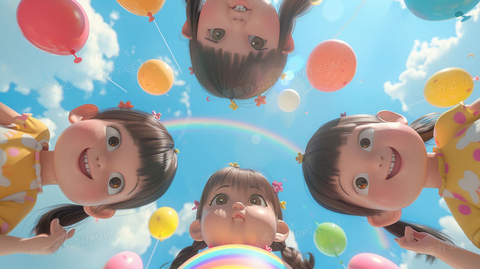 本作品内容为蓝天彩虹气球儿童俯视插画, 格式为 jpg, 大小3 MB, 图片尺寸为2912 x 1632, 源文件无水印, 欢迎使用熊猫办公。 如认为平台内容涉嫌侵权,可通过邮件:tousu@tukuppt.com提出书面通知,我们将及时处理。