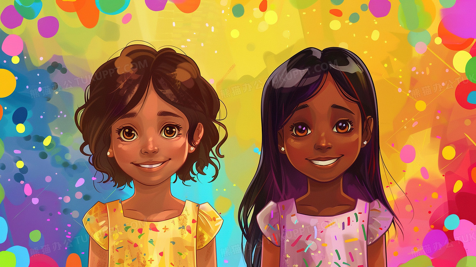 本作品内容为六一两个外国小女孩过生日插画, 格式为 jpg, 大小4 MB, 图片尺寸为2912 x 1632, 源文件无水印, 欢迎使用熊猫办公。 如认为平台内容涉嫌侵权,可通过邮件:tousu@tukuppt.com提出书面通知,我们将及时处理。