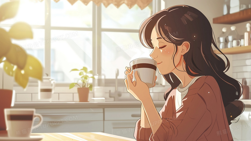 本作品内容为惬意喝着咖啡的女孩插画, 格式为 jpg, 大小2 MB, 图片尺寸为2912 x 1632, 源文件无水印, 欢迎使用熊猫办公。 如认为平台内容涉嫌侵权,可通过邮件:tousu@tukuppt.com提出书面通知,我们将及时处理。