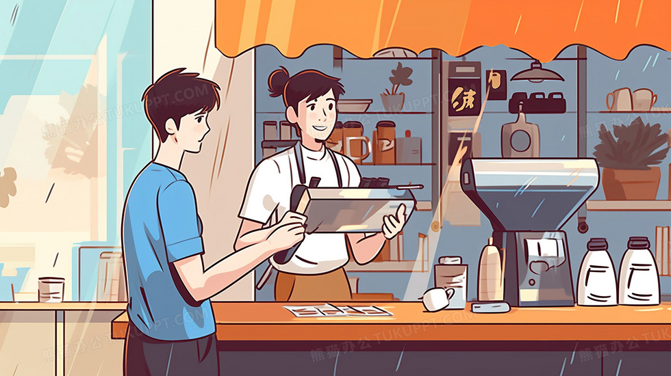 本作品内容为卡通人物咖啡店做咖啡餐饮下午茶插画, 格式为 jpg, 大小2 MB, 图片尺寸为2912 x 1632, 源文件无水印, 欢迎使用熊猫办公。 如认为平台内容涉嫌侵权,可通过邮件:tousu@tukuppt.com提出书面通知,我们将及时处理。