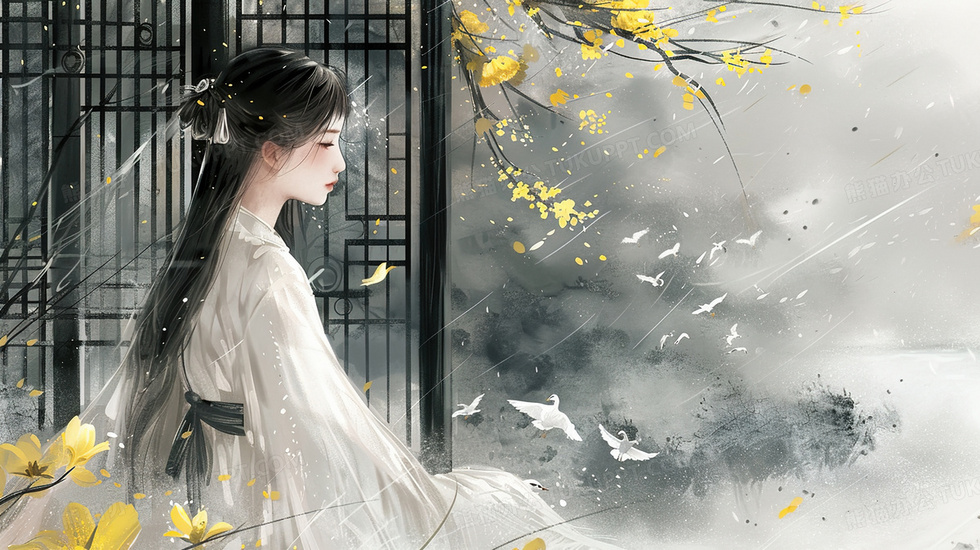 本作品内容为古建筑窗口前前坐着古典美人插画, 格式为 jpg, 大小3 MB, 图片尺寸为2912 x 1632, 源文件无水印, 欢迎使用熊猫办公。 如认为平台内容涉嫌侵权,可通过邮件:tousu@tukuppt.com提出书面通知,我们将及时处理。