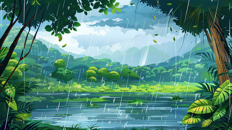 本作品内容为郊外山谷谷雨雨景插画, 格式为 jpg, 大小4 MB, 图片尺寸为2912 x 1632, 源文件无水印, 欢迎使用熊猫办公。 如认为平台内容涉嫌侵权,可通过邮件:tousu@tukuppt.com提出书面通知,我们将及时处理。