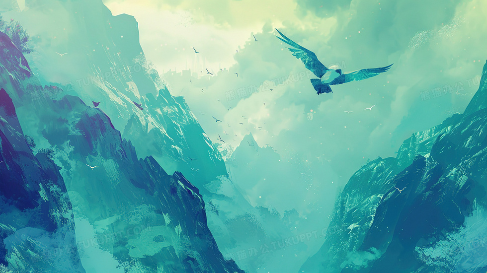 本作品内容为飞越丛山山谷的苍鹰插画, 格式为 jpg, 大小3 MB, 图片尺寸为2912 x 1632, 源文件无水印, 欢迎使用熊猫办公。 如认为平台内容涉嫌侵权,可通过邮件:tousu@tukuppt.com提出书面通知,我们将及时处理。