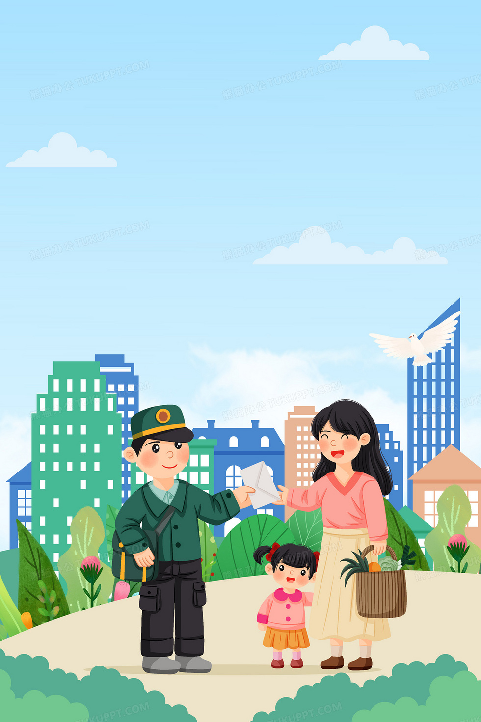 本作品内容为手绘清新卡通送信背景, 格式为 psd, 大小25 MB, 图片尺寸为3543 x 5315, 作品中背景图片无需修改, 源文件无水印,可以直接使用, 欢迎使用熊猫办公。 如认为平台内容涉嫌侵权,可通过邮件:tousu@tukuppt.com提出书面通知,我们将及时处理。