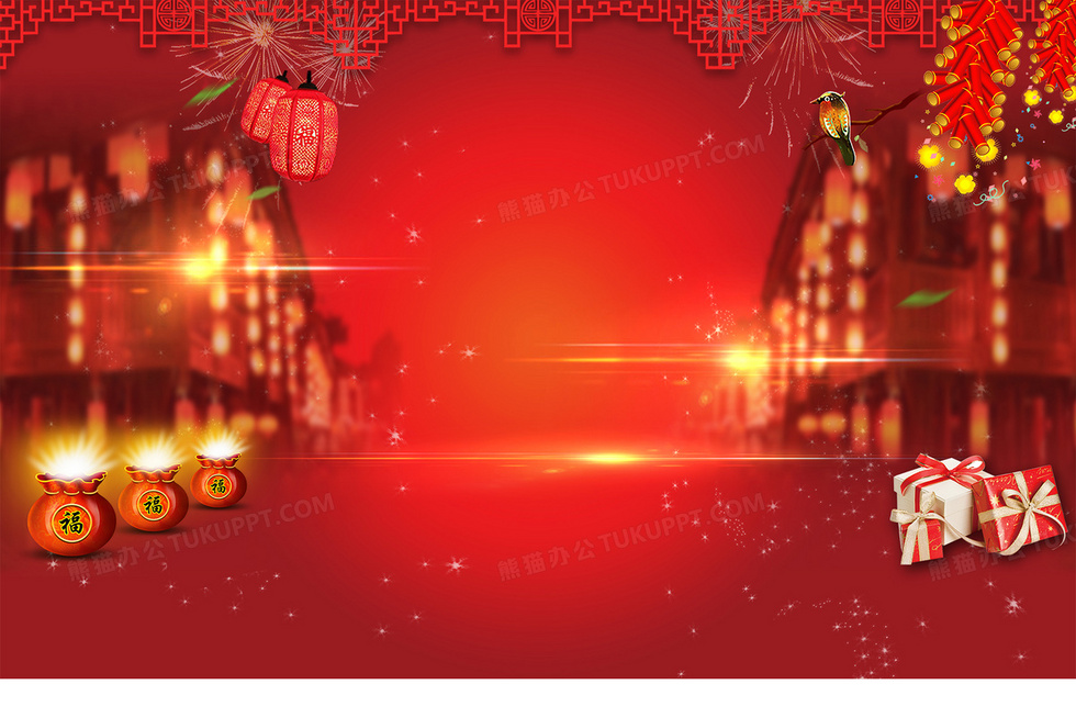 本作品内容为礼品灯笼鞭炮新年节日新年, 格式为 psd, 图片尺寸为3064 x 2044, 作品中背景图片无需修改, 源文件无水印,可以直接使用, 欢迎使用熊猫办公。 如认为平台内容涉嫌侵权,可通过邮件:tousu@tukuppt.com提出书面通知,我们将及时处理。