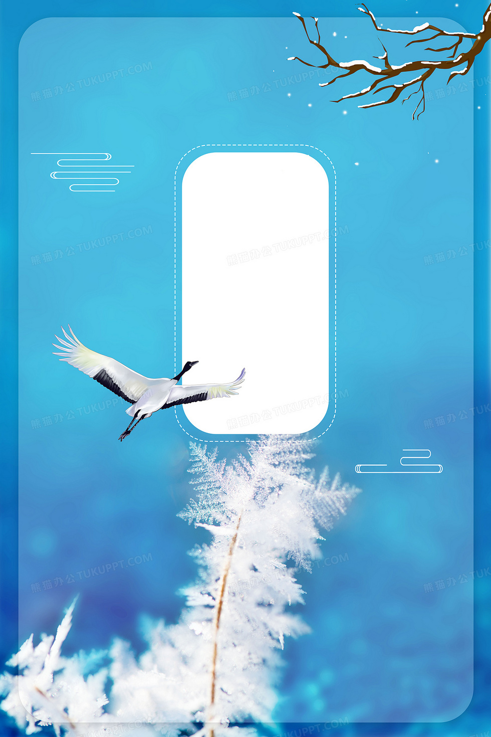 本作品内容为二十四节气霜降清新冰雪白鹤背景, 格式为 psd, 大小162 MB, 图片尺寸为7086 x 10631, 作品中背景图片无需修改, 源文件无水印,可以直接使用, 欢迎使用熊猫办公。 如认为平台内容涉嫌侵权,可通过邮件:tousu@tukuppt.com提出书面通知,我们将及时处理。