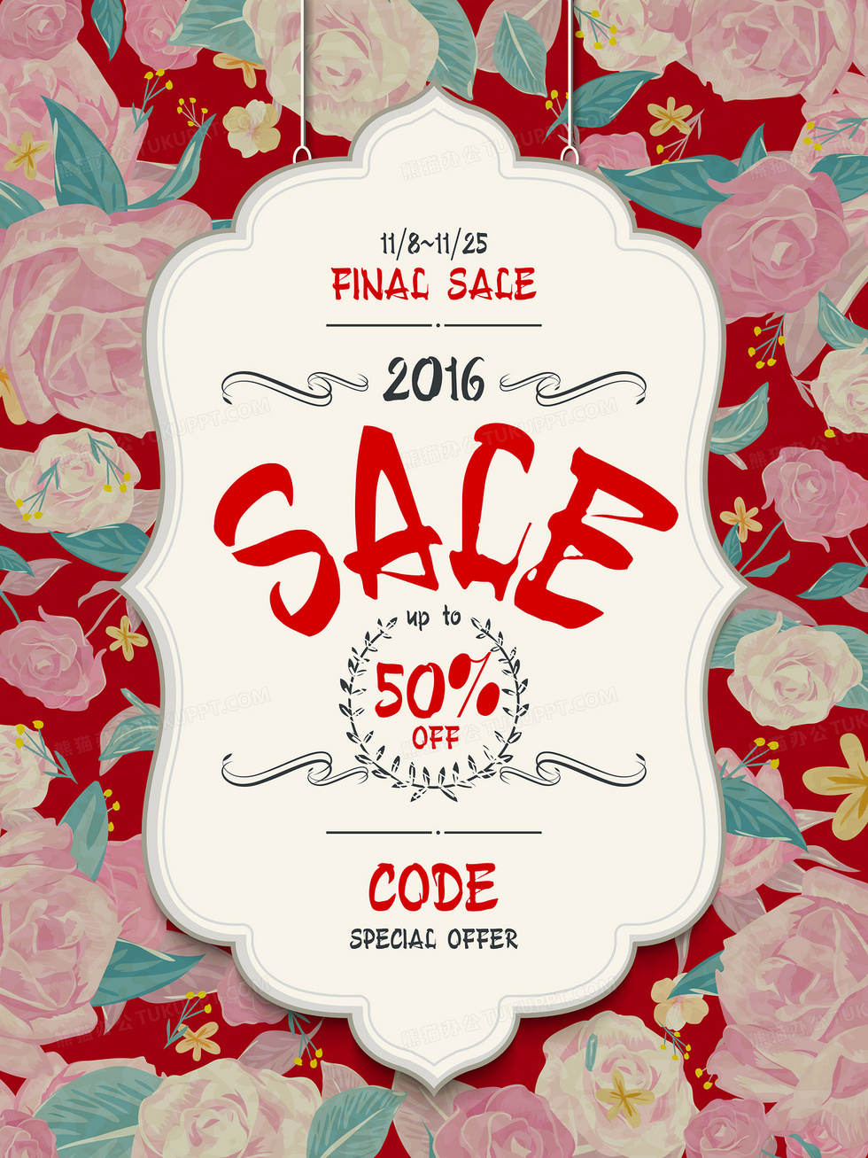 本作品内容为复古鲜花抢购特卖海报, 格式为 eps, 图片尺寸为3464 x 4618, 作品中背景图片无需修改, 源文件无水印,可以直接使用, 欢迎使用熊猫办公。 如认为平台内容涉嫌侵权,可通过邮件:tousu@tukuppt.com提出书面通知,我们将及时处理。