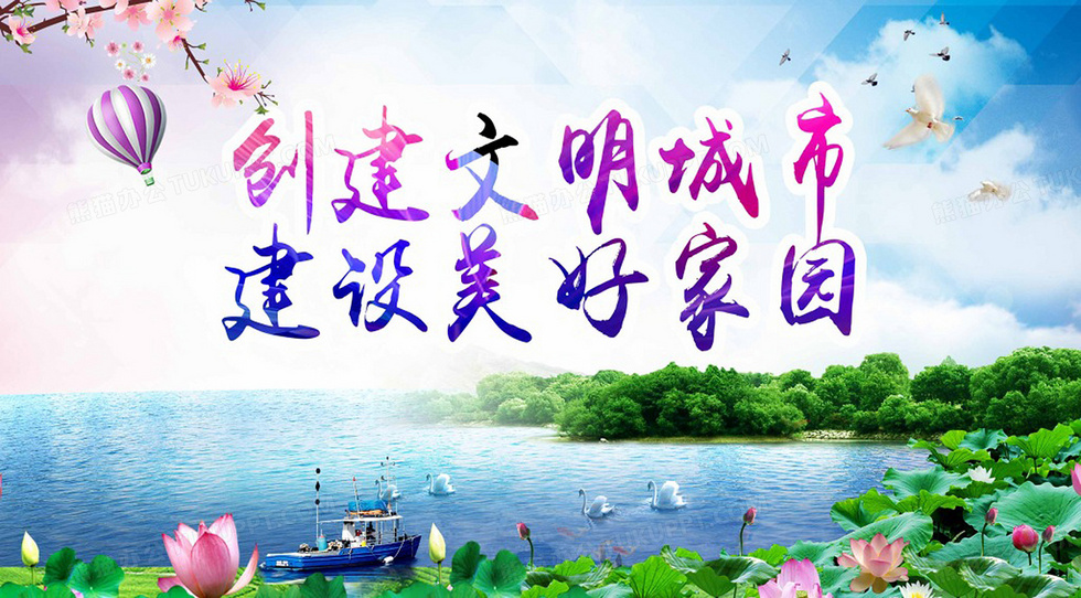本作品内容为文明城市美丽家园宣传海报, 格式为 psd, 图片尺寸为3612 x 2000, 作品中背景图片无需修改, 源文件无水印,可以直接使用, 欢迎使用熊猫办公。 如认为平台内容涉嫌侵权,可通过邮件:tousu@tukuppt.com提出书面通知,我们将及时处理。