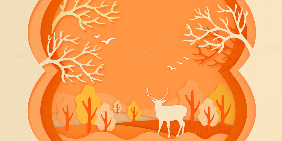 本作品内容为剪纸风秋季树林麋鹿背景, 格式为 psd, 大小5 MB, 图片尺寸为4724 x 2362, 作品中背景图片无需修改, 源文件无水印,可以直接使用, 欢迎使用熊猫办公。 如认为平台内容涉嫌侵权,可通过邮件:tousu@tukuppt.com提出书面通知,我们将及时处理。