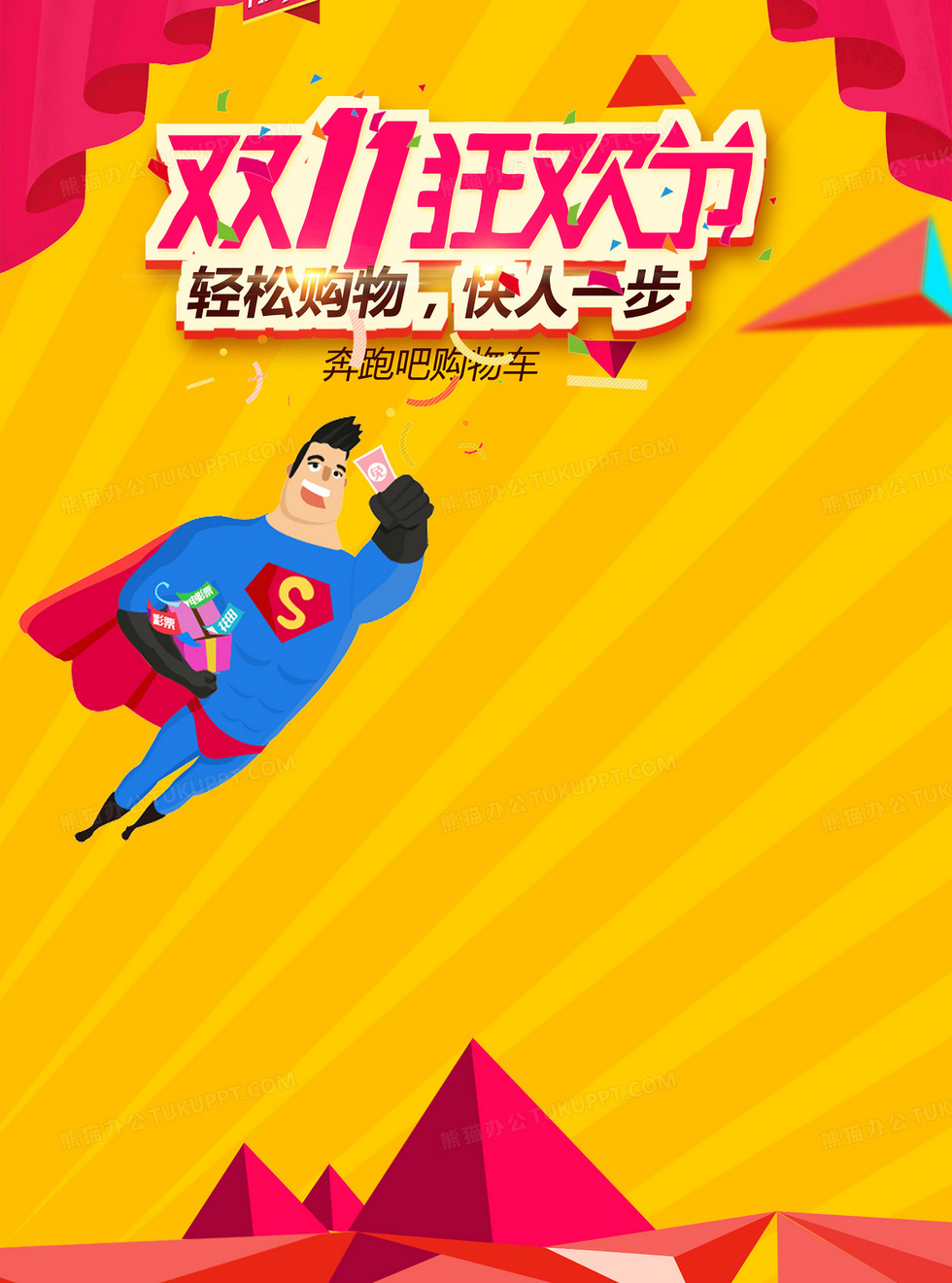 本作品内容为扁平化双十一海报, 格式为 jpg, 图片尺寸为2500 x 3367, 作品中背景图片无需修改, 源文件无水印,可以直接使用, 欢迎使用熊猫办公。 如认为平台内容涉嫌侵权,可通过邮件:tousu@tukuppt.com提出书面通知,我们将及时处理。