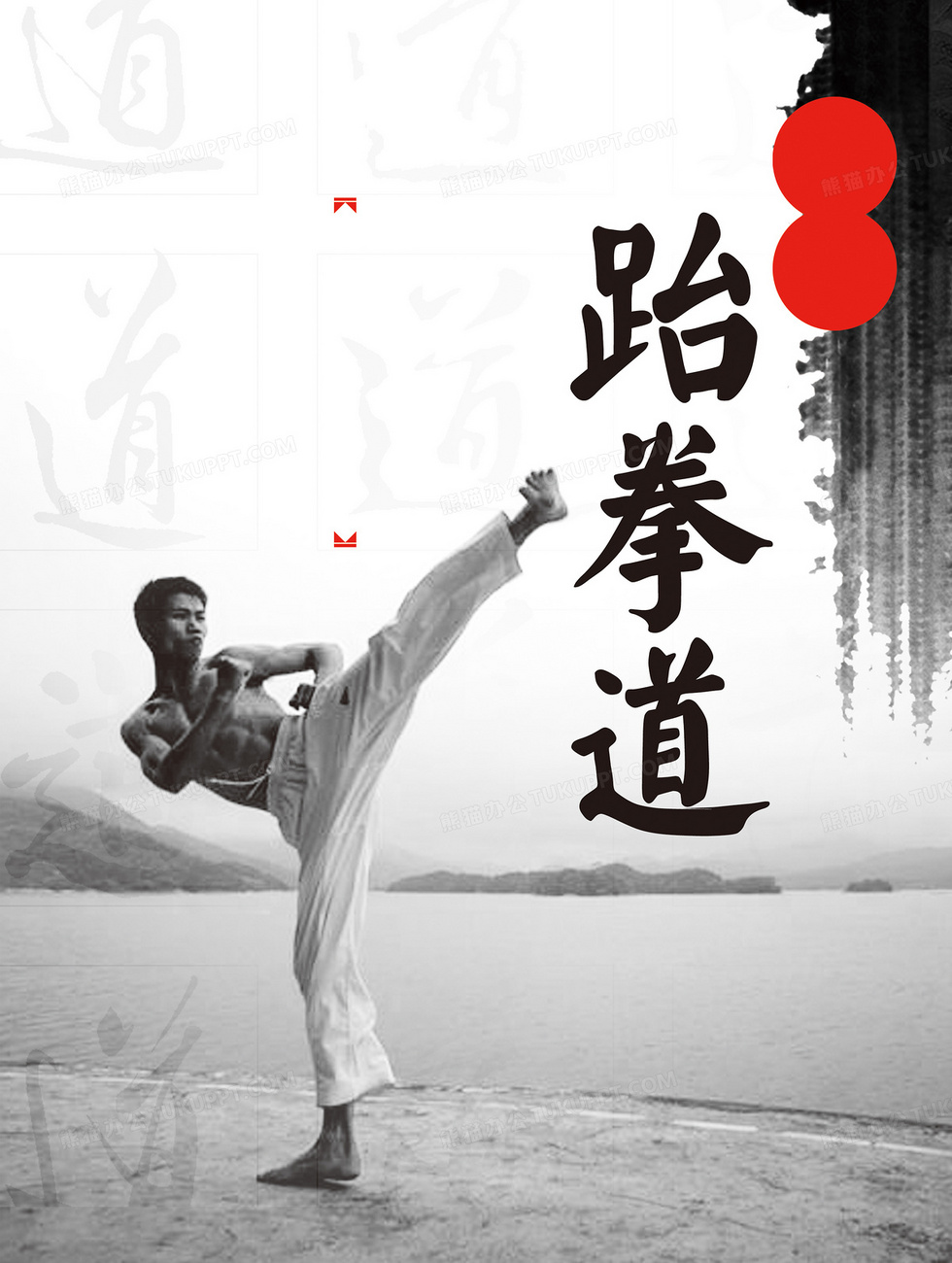 本作品内容为水墨中国风跆拳道海报, 格式为 psd, 图片尺寸为2591 x 3437, 作品中背景图片无需修改, 源文件无水印,可以直接使用, 欢迎使用熊猫办公。 如认为平台内容涉嫌侵权,可通过邮件:tousu@tukuppt.com提出书面通知,我们将及时处理。