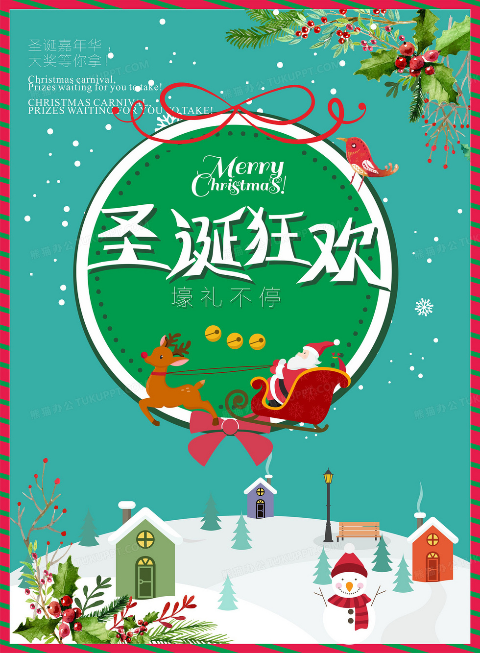 本作品内容为圣诞狂欢cdr矢量海报背景模板, 格式为 cdr, 图片尺寸为3480 x 4732, 作品中背景图片无需修改, 源文件无水印,可以直接使用, 欢迎使用熊猫办公。 如认为平台内容涉嫌侵权,可通过邮件:tousu@tukuppt.com提出书面通知,我们将及时处理。