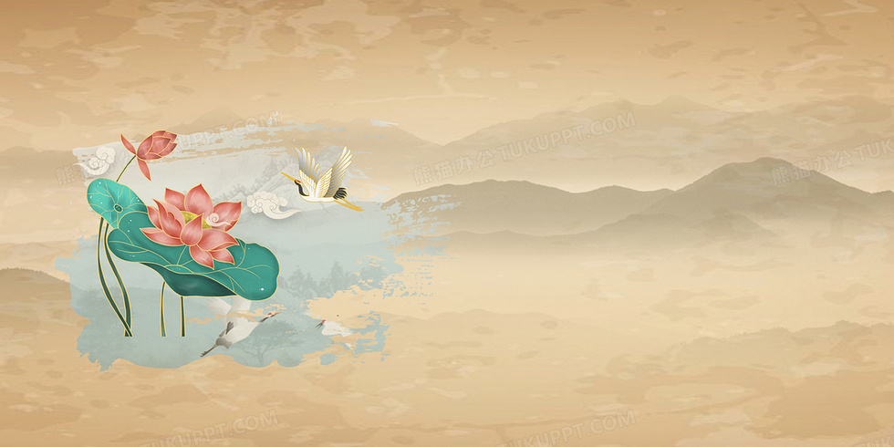 本作品内容为简约中国风山水荷花写意背景, 格式为 psd, 大小58 MB, 图片尺寸为4724 x 2362, 作品中背景图片无需修改, 源文件无水印,可以直接使用, 欢迎使用熊猫办公。 如认为平台内容涉嫌侵权,可通过邮件:tousu@tukuppt.com提出书面通知,我们将及时处理。