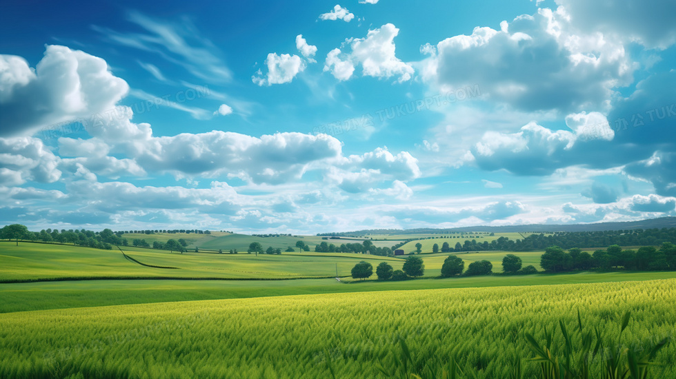 本作品内容为绿色夏季乡村田野自然风景插画, 格式为 jpg, 大小6 MB, 图片尺寸为2912 x 1632, 源文件无水印, 欢迎使用熊猫办公。 如认为平台内容涉嫌侵权,可通过邮件:tousu@tukuppt.com提出书面通知,我们将及时处理。
