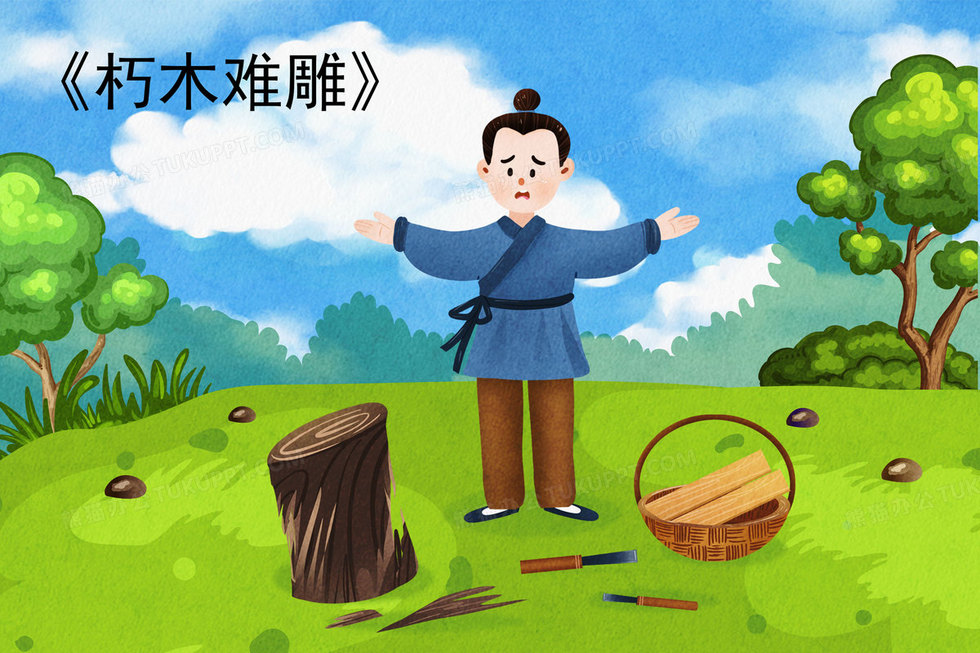 本作品内容为卡通朽木难雕成语故事创意插画, 格式为 psd, 大小91 MB, 请使用软件PhotoShop(CC)打开, 源文件无水印, 欢迎使用熊猫办公。 如认为平台内容涉嫌侵权,可通过邮件:tousu@tukuppt.com提出书面通知,我们将及时处理。