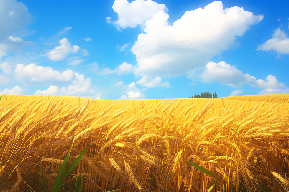 本作品内容为卡通唯美蓝天白云下的麦田插画, 格式为 jpg, 大小5 MB, 图片尺寸为2688 x 1792, 源文件无水印, 欢迎使用熊猫办公。 如认为平台内容涉嫌侵权,可通过邮件:tousu@tukuppt.com提出书面通知,我们将及时处理。