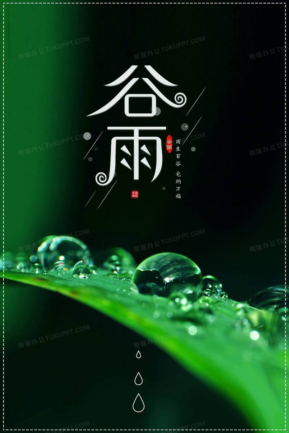 本作品内容为唯美谷雨节气植物露水摄影图合成背景, 格式为 psd, 大小21 MB, 图片尺寸为2362 x 3543, 作品中背景图片无需修改, 源文件无水印,可以直接使用, 欢迎使用熊猫办公。 如认为平台内容涉嫌侵权,可通过邮件:tousu@tukuppt.com提出书面通知,我们将及时处理。