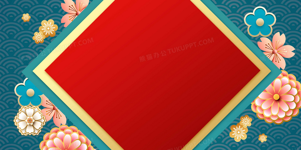 本作品内容为新春花朵国潮纹理背景, 格式为 psd, 大小16 MB, 图片尺寸为4724 x 2362, 作品中背景图片无需修改, 源文件无水印,可以直接使用, 欢迎使用熊猫办公。 如认为平台内容涉嫌侵权,可通过邮件:tousu@tukuppt.com提出书面通知,我们将及时处理。