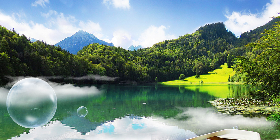 本作品内容为清新绿水青山背景, 格式为 psd, 大小77 MB, 图片尺寸为4724 x 2362, 作品中背景图片无需修改, 源文件无水印,可以直接使用, 欢迎使用熊猫办公。 如认为平台内容涉嫌侵权,可通过邮件:tousu@tukuppt.com提出书面通知,我们将及时处理。